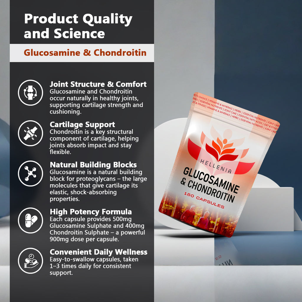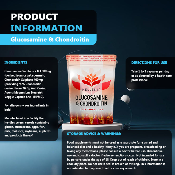 The Hellenia Healthfoods Glucosamine and Chondroitin capsules offer a high quality, UK manufactured Glucosamine and Chondroitin product at an unbeatable price.