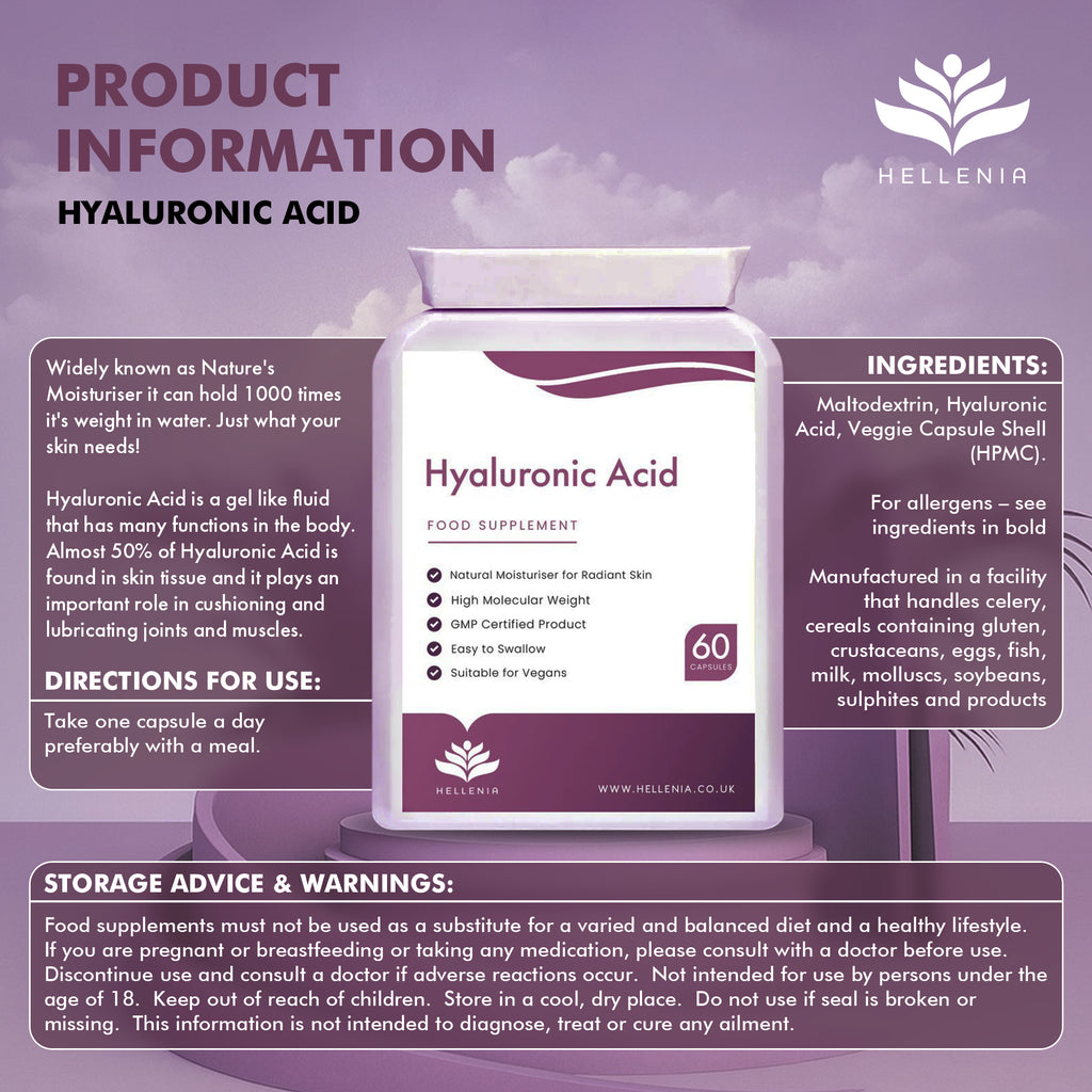 A one a day supplement of Hyaluronic Acid in an easy to take capsule. Skin care in a capsule! Especially beneficial to skin and joints.