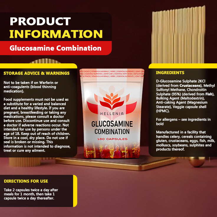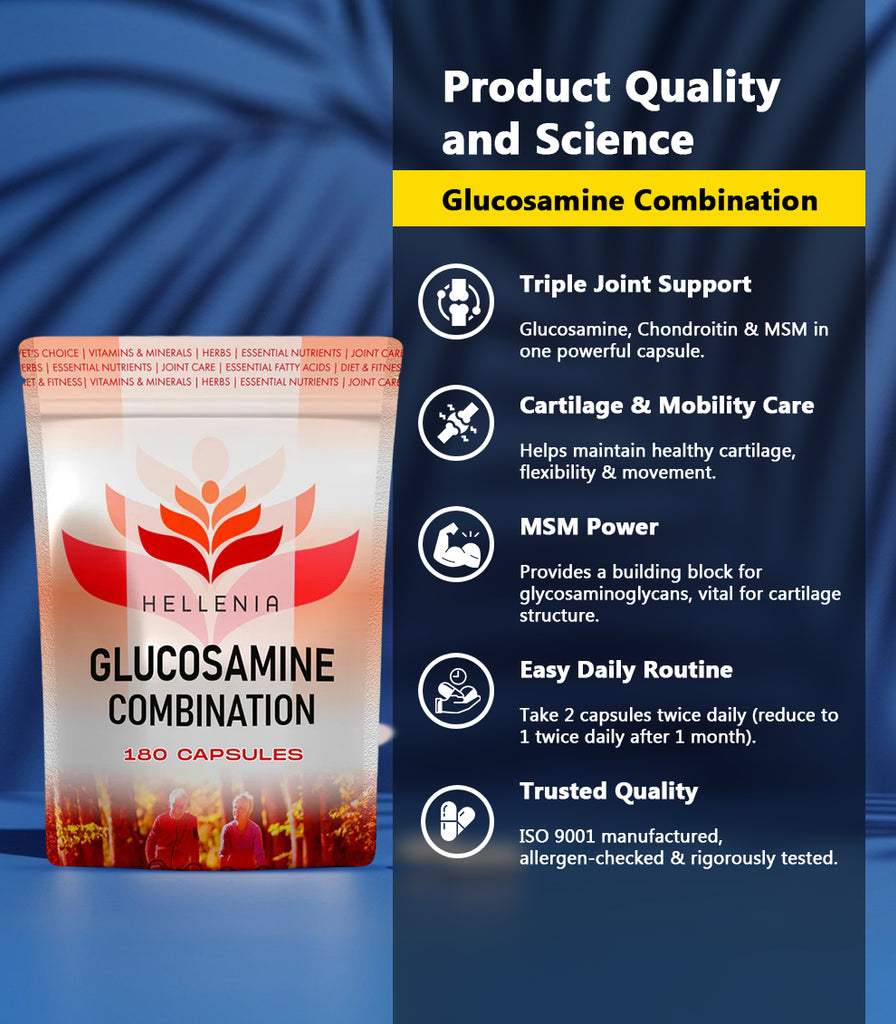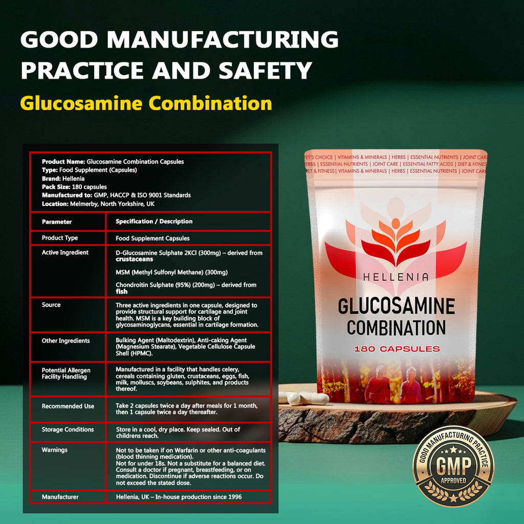 Three active ingredients in one capsule. Glucosamine Combination capsules contain Glucosamine Sulphate, a high potency of Chondroitin Sulphate and MSM. MSM is a powerful building block of glycosaminoglycans which are key structural components in cartilage.