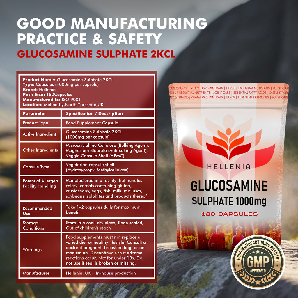 Glucosamine Sulphate 2KCl, Bulking Agent (Microcrystalline Cellulose), Anti-caking Agent (Magnesium Stearate), Veggie Capsule Shell (HPMC).